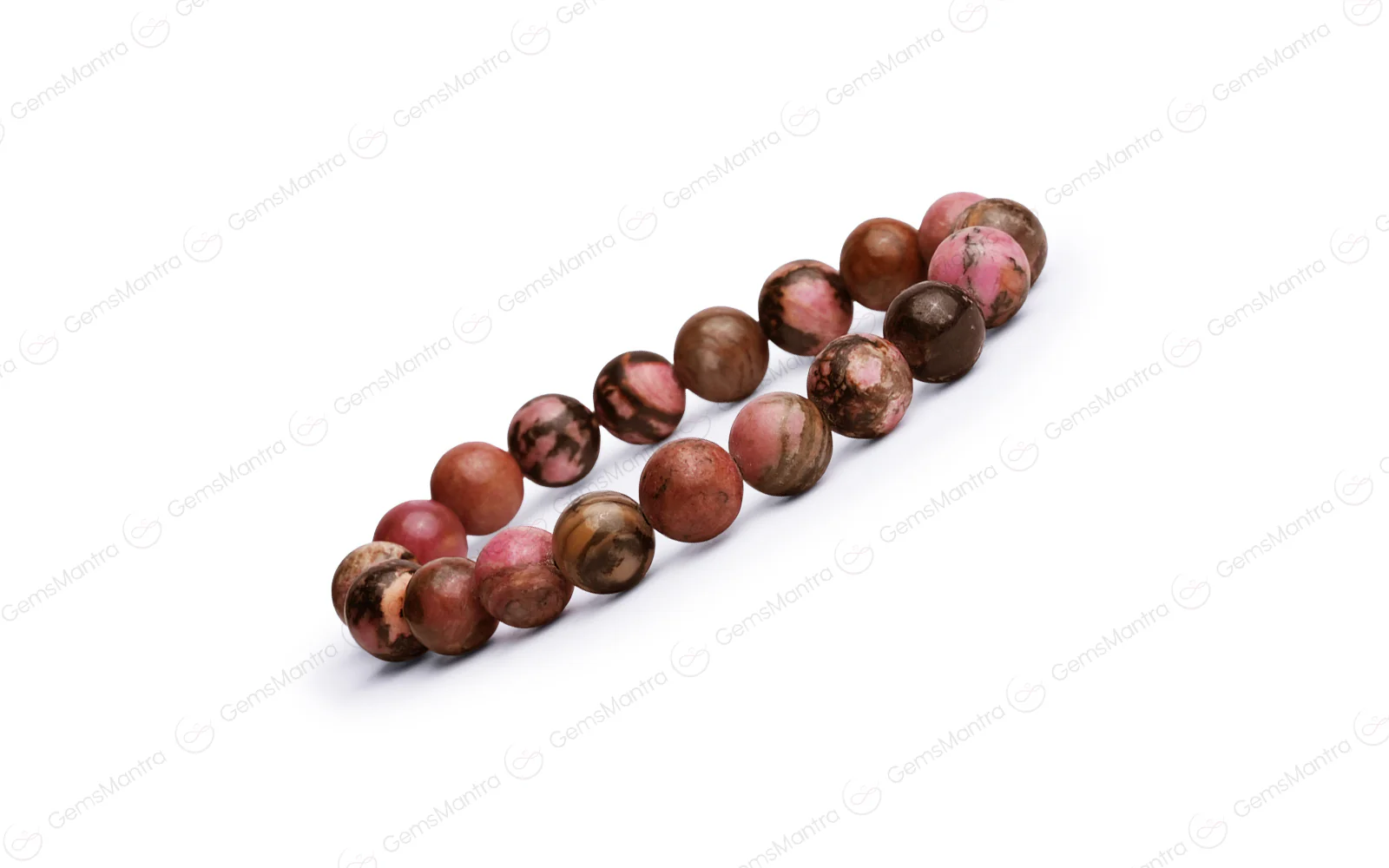 The Rhodonite crystal bracelet is crafted from high-quality crystal beads, displaying beautiful shades of pink with black veins. These carefully polished 8mm beads are arranged on a durable, stretchable band, making it comfortable for daily wear. Known for its nurturing energy, this original Rhodonite bracelet promotes love, emotional healing, and inner balance.